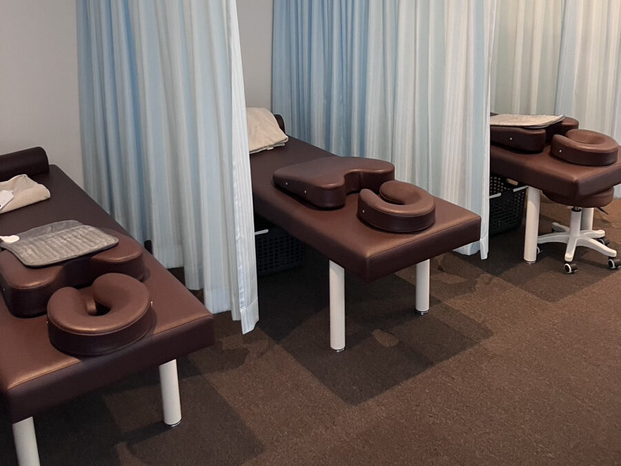 清潔で施術を受けられた方がリラックスできる空間作りを心がけております。施術中はプライバシーに配慮して、各ベッドをカーテンで仕切ります。
